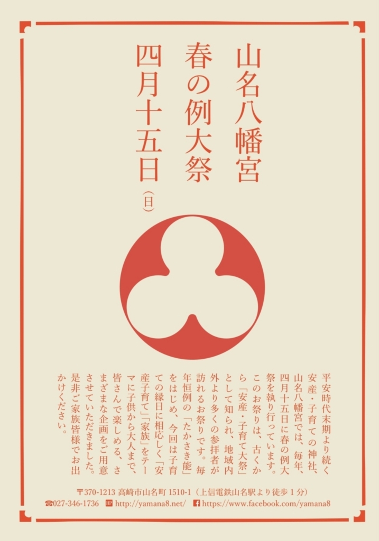 4/15 春の例大祭 4/14 特別催し のお知らせ - 群馬県高崎市 安産・子育ての宮 山名八幡宮 ブログ